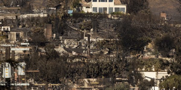 A un lado de la calle están las cenizas de casas carbonizadas por los tremendos incendios que derrotaron a los bomberos de Los Ángeles cuando los hidrantes se secaron. Del otro, un pequeño centro comercial con sus tiendas intactas, vigilado…