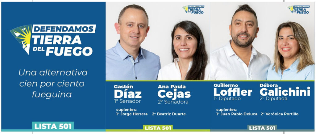 El Frente 501 Defendamos Tierra del Fuego oficializó la presentación de sus candidatos para las elecciones legislativas del próximo 26 de octubre. La gran novedad es la designación de Gastón Díaz como candidato a senador nacional, acompañado por Ana Paula Cejas como compañera de fórmula. Ambos son secretarios de Gobierno de sus respectivos municipios: Río Grande y Tolhuin.