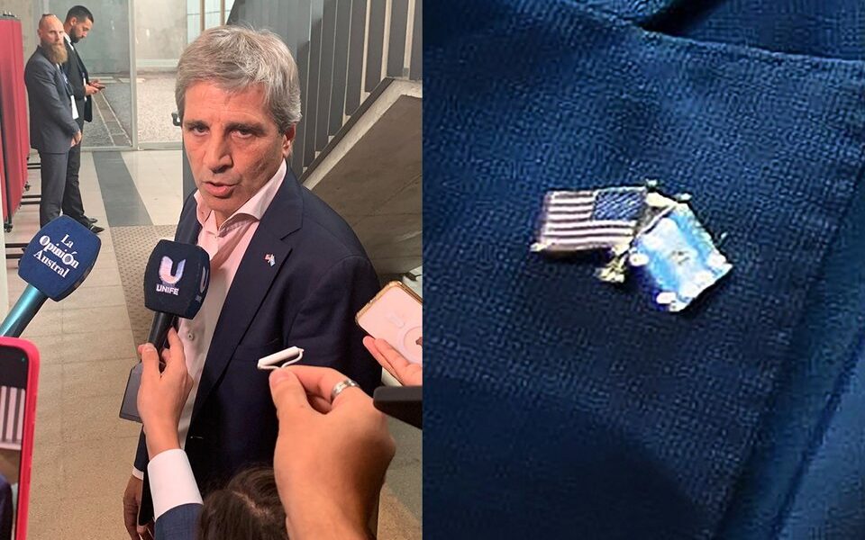 El titular del Palacio de Hacienda llamó la atención por un detalle: en la solapa llevaba un pin con las banderas entrelazadas de la Argentina y Estados Unidos.