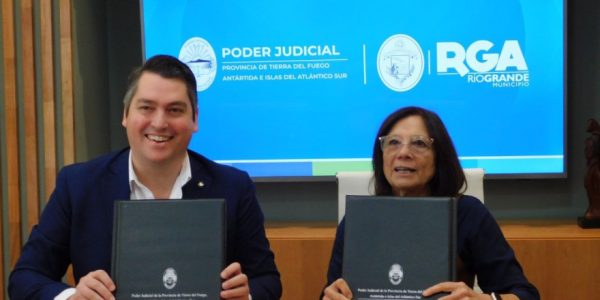 El intendente Martín Perez y la presidenta del Superior Tribunal de Justicia (STJ), María del Carmen Battaini, firmaron este lunes un convenio de colaboración y asistencia para facilitar el acceso a los servicios que brinda la Justicia fueguina en Río…