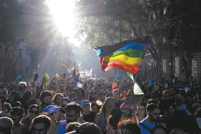 Desde el colectivo LGTBIQ+ también salieron a pegarle al Presidente. “No se puede tapar el sol con las manos. Los que el Presidente catalogó como un peligro para la sociedad fueron abrazados por una multitud. Eso es lo que no quieren que se note, toda la solidaridad que recibimos”, dijo a Página/12 Martín Canevaro, activista de 100% Diversidad y Derechos. Respecto de la participación en la marcha de sindicatos y organizaciones sociales y políticas, Canevaro sostuvo que “es un hecho que el movimiento LGBT celebra, porque excede a nuestra comunidad y se pone en valor por toda la sociedad que está siendo afectada por este ataque”.