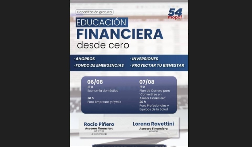 Las capacitaciones estarán a cargo de las asesoras financieras Rocío Piñero y Lorena Ravettini.