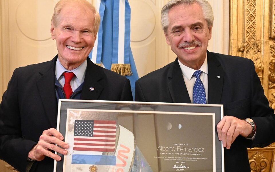 Nelson se reunió este jueves con el presidente Alberto Fernández para oficializar la incorporación de Argentina a los Acuerdos Artemisa, unos convenios que buscan generar un ámbito de cooperación internacional en materia espacial y cuentan con la adhesión de 27 países.