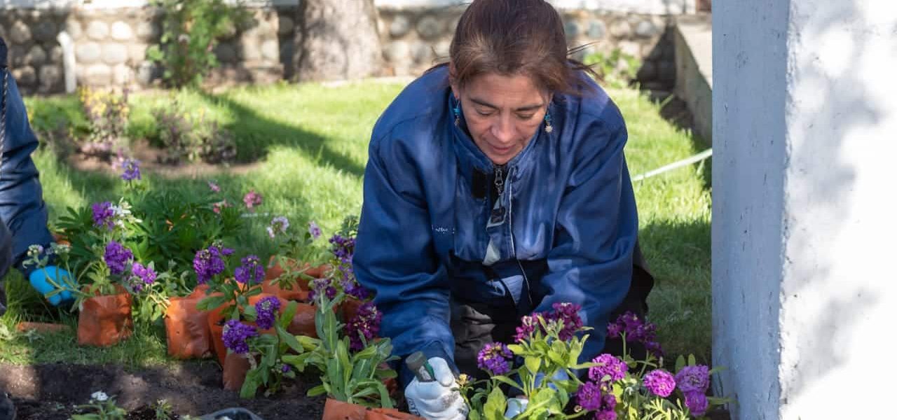 Trabajadores municipales realizan labores de forestación, corte de pasto y colocación de plantines florales de cara a la próxima temporada veraniega en el exterior del Municipio, plazas y dependencias municipales. Además, se intervienen canteros de Av. Liniers, Perón, Belgrano y San Martín; y a mediados de noviembre se replicarán las labores en calle Islas Malvinas.