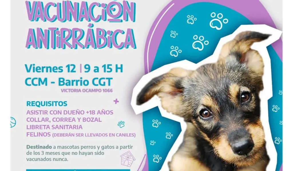 Se desarolla este viernes 12 de julio, en el Centro Comunitario Municipal del barrio CGT. Está destinada a caninos y felinos, a partir de los 3 meses que no hayan sido vacunados nunca o posean su vacuna vencida. A través de esta política, se fortalece el cuidado y protección de las mascotas de Río Grande.