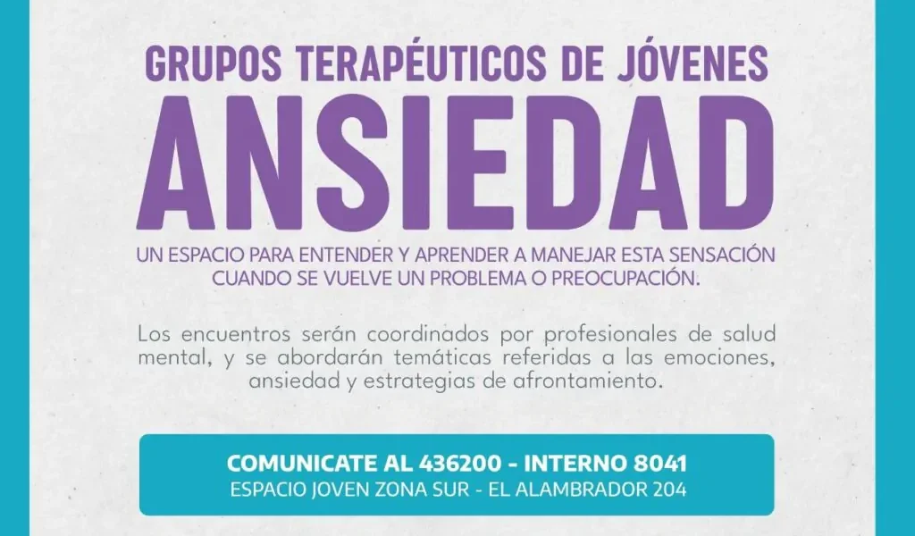 Ya están abiertas las inscripciones para los grupos terapéuticos destinados a jóvenes, a partir de los 18 años. Se desarrollarán en Espacio Joven de zona sur y serán coordinados por psicólogos y trabajadores sociales de la Dirección General de Salud Mental y Adicciones del Municipio de Río Grande.