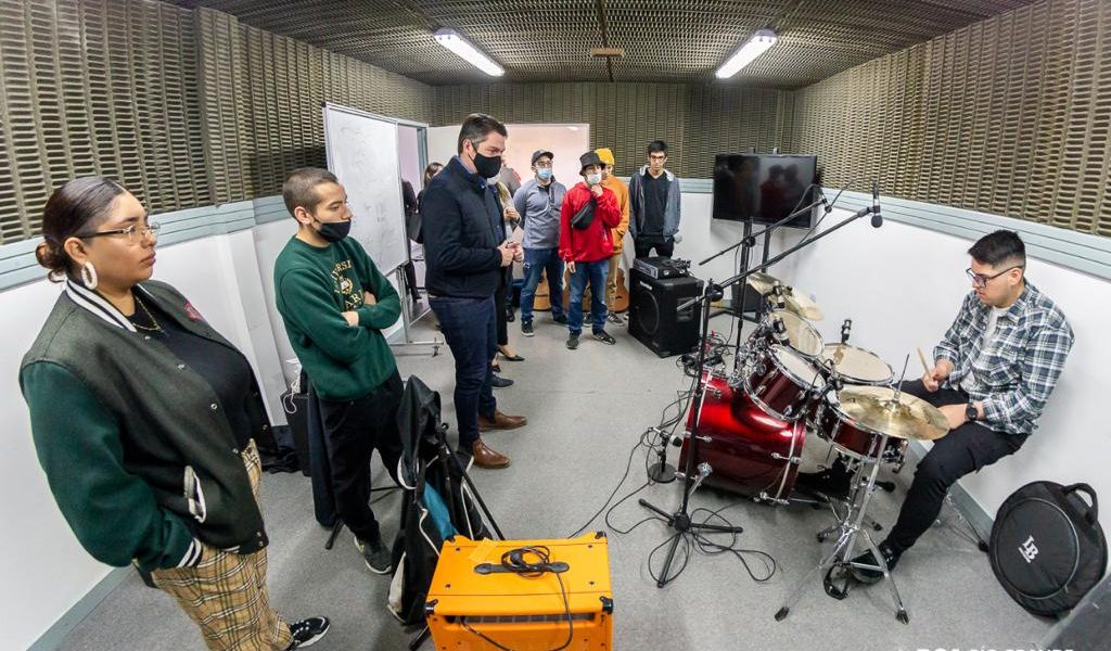 El intendente Martín Perez recorrió las instalaciones de la nueva sala de grabación del Espacio Joven. Asimismo, presentó los materiales e insumos para este nuevo lugar, y también los instrumentos para la orquesta infantil municipal; todo gracias a una inversión superior a los 2 millones de pesos.
