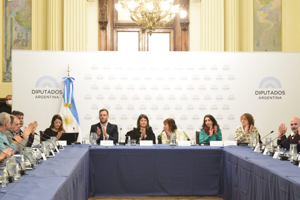 En esta mesa estuvieron presentes Germán Martínez, presidente del bloque de diputados del Frente de Todos, y la coordinadora del Observatorio de Cannabis, Brenda Maier.